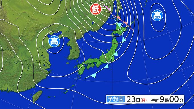 22日の予想最高気温は、大阪や松江で20度、福岡22度など、西日本で20度くらいまで上がり、23日は東京でも4月中旬並みの20度まで上がる見込みです。