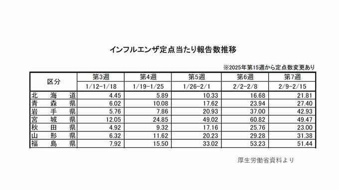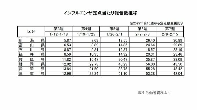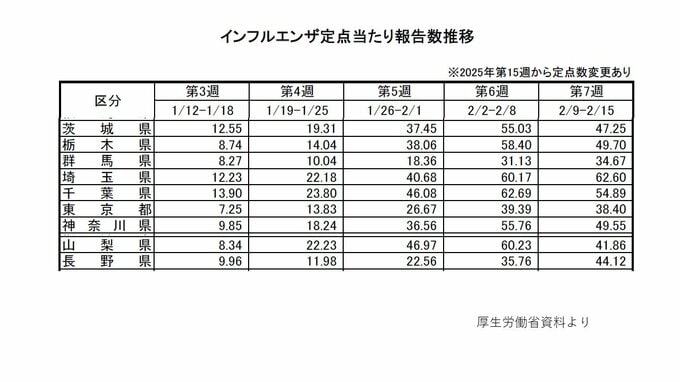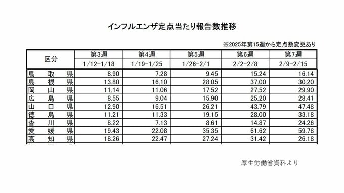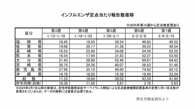 【インフル流行状況】全国で「警報」基準超え続く 47都道府県の「1医療機関あたり患者数」を一覧化 感染拡大顕著な自治体は…大分64.43人、埼玉62.30人など 今年はB型流行 感染対策の徹底を 毎日放送 2026年2月20日(金) 16:00 国内 【画像で見る】都道府県別の患者数は・・・? ▼北海道・東北地方 ▼関東・甲信地方 ▼東海・北陸地方 ▼近畿地方 ▼中国・四国地方 ▼九州・沖縄地方