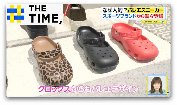 他にも、ナイキやFILA、オニツカタイガー、CONVERSEなどからもバレエスニーカーが販売され、クロックスからはバレエシューズモチーフの商品が登場しています。