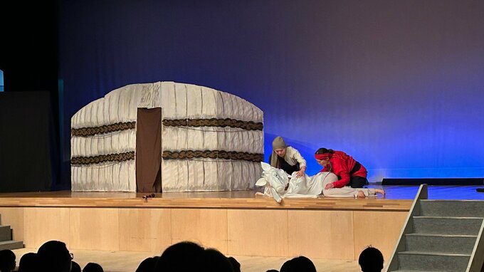 11月から練習してきたという、モンゴルを舞台にした民話「スーホの白い馬」の劇を披露。