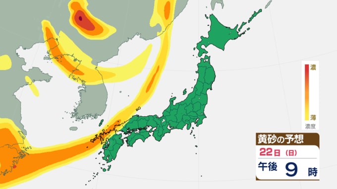 3連休は気温上昇 東京20℃、九州では22℃予想も 冬服は暑いレベル 日曜午後は広範囲で黄砂飛来へ 雨風・黄砂シミュレーション 長崎放送 2026年2月20日(金) 18:00 国内 黄砂飛来へ ◆雨風シミュレーション ◆黄砂シミュレーション ◆寒気シミュレーション 22日(日)からは黄砂の飛来が予測されています。九州など西日本では雨や雷雨の所もあり、汚れを伴う「泥まじりの雨」となる恐れがあります。洗濯物などは室内に干すのが安心です。 黄砂の飛来予測は画像から確認してください。