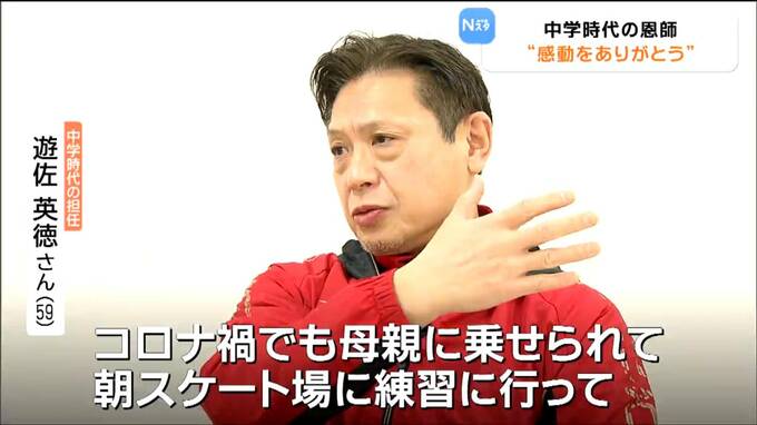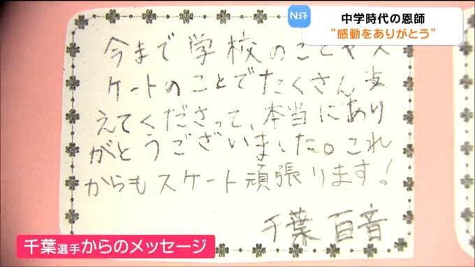 「俺から金メダルやるよ」フィギュア千葉百音選手 中学時代の恩師も "教え子が世界で輝きを見せた" と感動 ミラノ・コルティナ冬季オリンピック™ 東北放送 2026年2月20日(金) 18:38 国内 フィギュアだけでなく勉学にも一生懸命 遊佐英徳・先生: 「帰りも母親が来るまで校門で待っている時に勉強をしていた成績も優秀です」 これは、千葉選手が卒業の時に遊佐先生に送ったメッセージです。