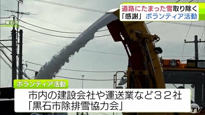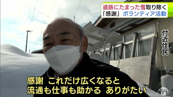 今年も大雪となった青森県黒石市でボランティアの人たちが道路にたまった雪を取り除く作業を行いました。