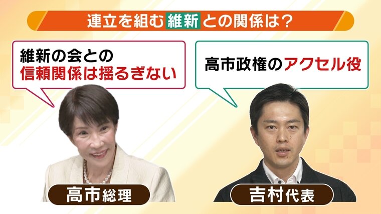 自維連立政権について、高市総理は「維新の会との信頼関係は揺るぎない」、吉村代表は「高市政権のアクセル役」と話しています。