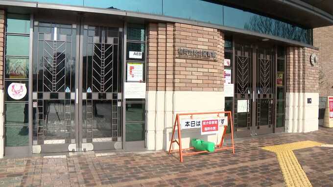 「事件を受け、きょう図書館は臨時休館となっていて、いつも開館を待つ人が列を作っていますが、その姿も見られません。」