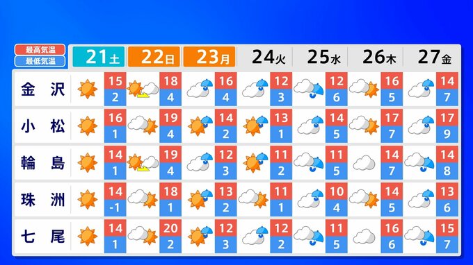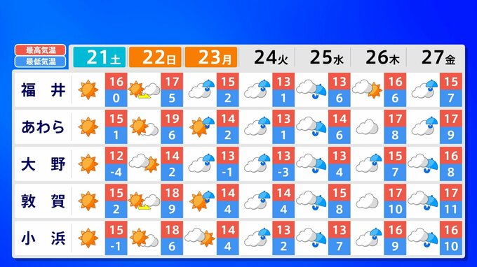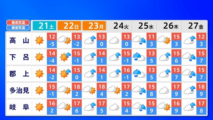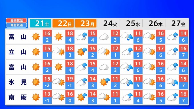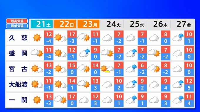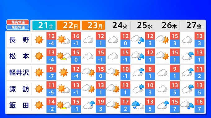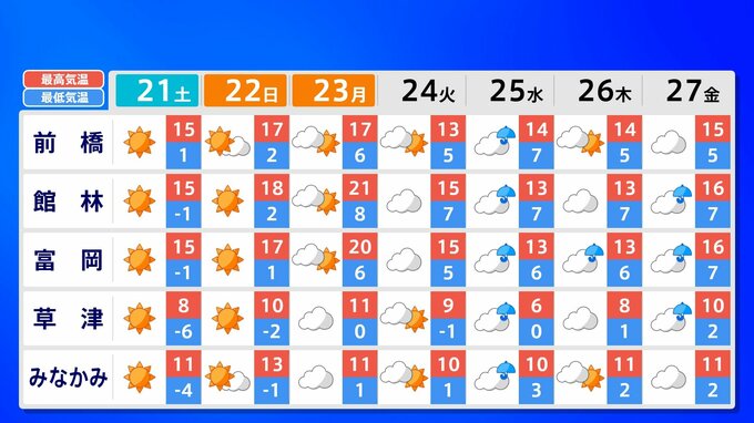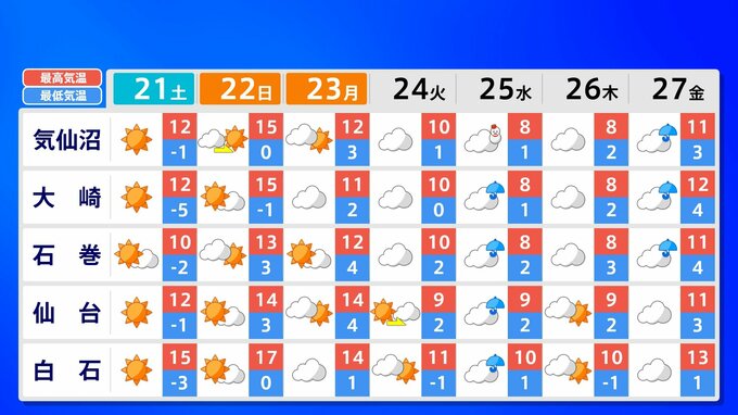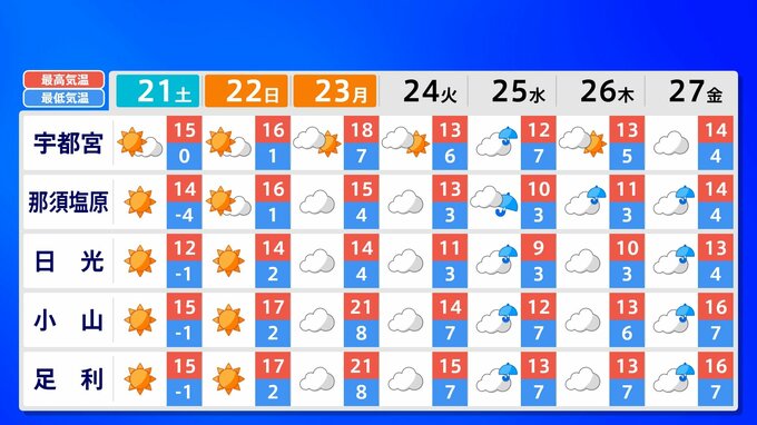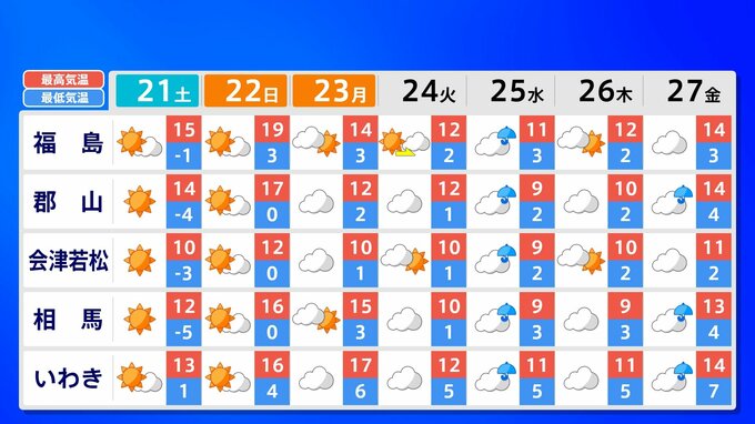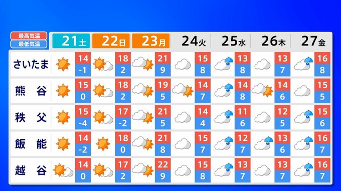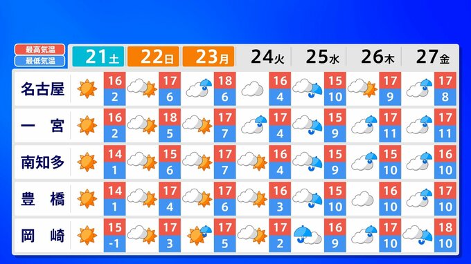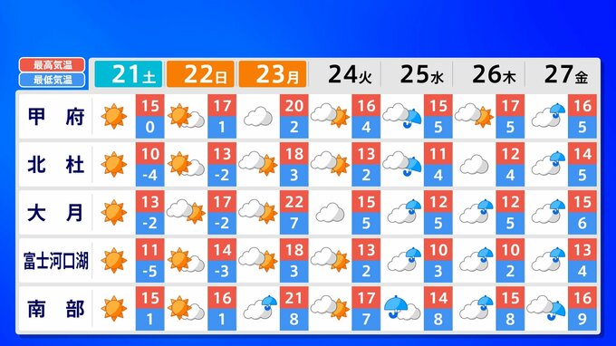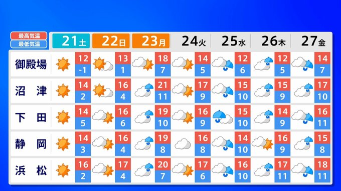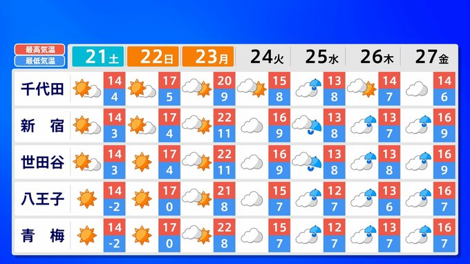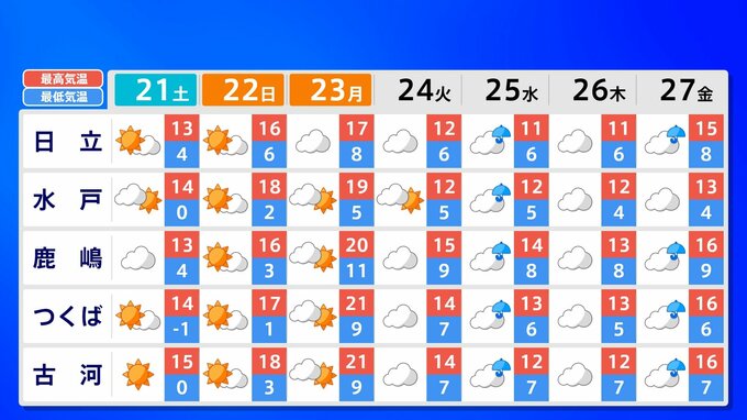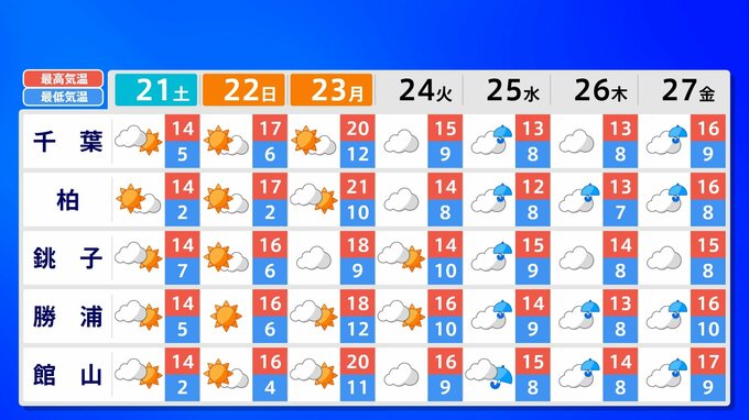 【黄砂情報】3連休「黄砂」飛来で「花粉症」悪化のおそれ 黄砂による「花粉爆発とは?」【黄砂のシミュレーション21日(土)~23日(月祝)/ 全国各都市の週間予報】3連休の天気予報 南日本放送 2026年2月20日(金) 19:30 国内 天気 全国の週間予報(21日(土)~27日(金)) 各都道府県の週間予報(27日(金)まで)を画像で掲載しています(各都道府県5か所ずつ)。3連休明けは「待望の雨」、雨の日が多くなりそうです。 この記事をはじめから → 【黄砂飛来で「花粉症」悪化のおそれ】黄砂シミュレーション