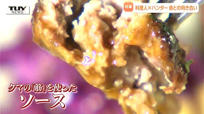 クマの「筋」を使ったソースも食材の魅力を引き立たせます。