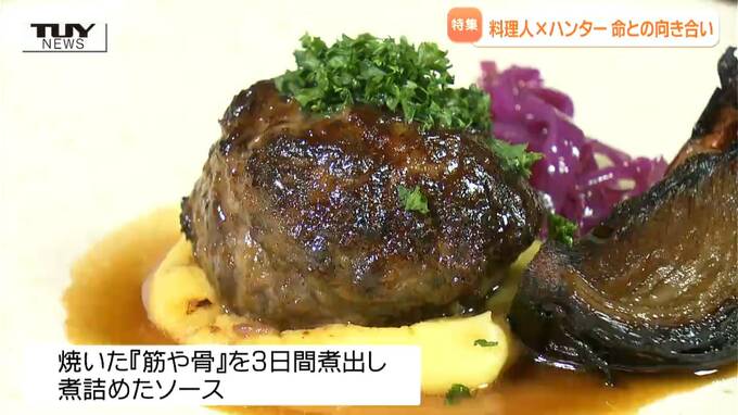 岩本文平さん「筋だったり、クマの骨だったりを一回しっかり焼き切って、そこから煮だしてぎゅっと煮詰めてソースにしています」