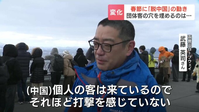 この冬の函館は、台湾との直行便が増えたことなどで台湾からの観光客が増加しましたが、中国からの団体客はほぼ「ゼロ」だといいます。