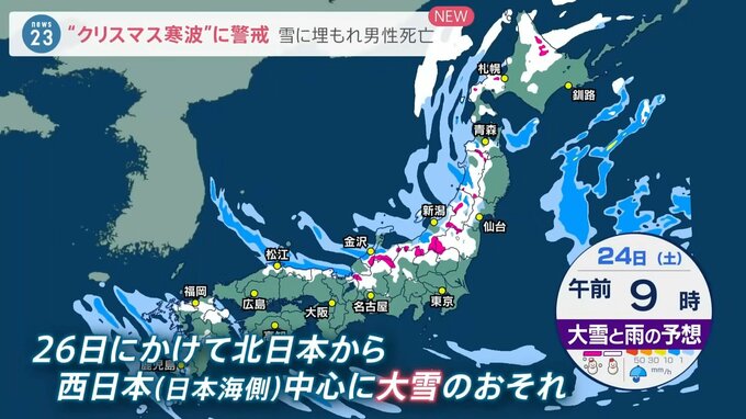 ■“クリスマス寒波”に警戒 雪に埋もれ男性死亡