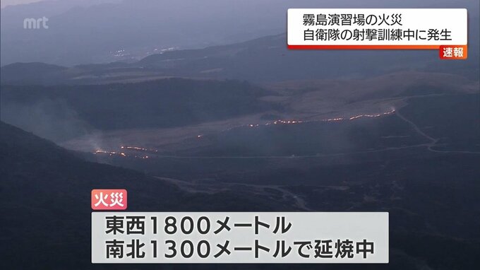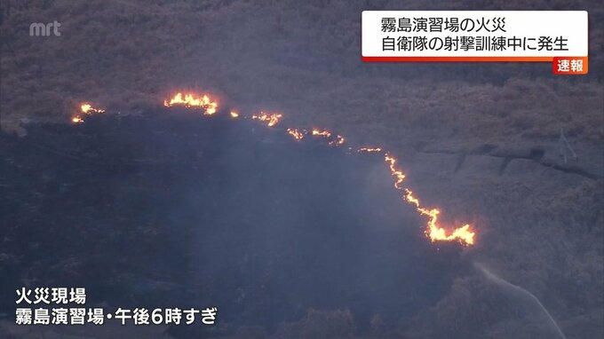 防衛省によりますと、20日午前10時10分頃、えびの駐屯地の第24普通科連隊およそ30人が81ミリ迫撃砲の射撃訓練中で、着弾した際に、火災が発生したということです。