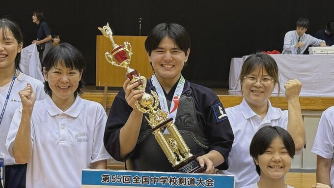 身長は164センチ、その体格も魅力の富島は去年8月の全国中学校大会で、女子個人戦、県勢初の決勝に進出し、見事優勝。全中優勝は、男女通じても県勢剣道界初の快挙でした。
