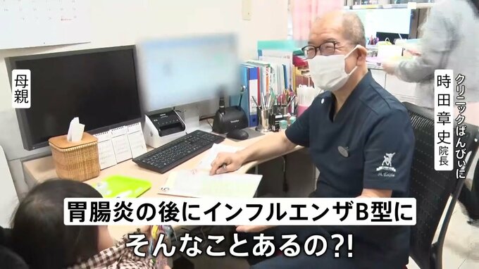 1歳の女の子は、4日前に感染性胃腸炎に。19日に発熱したため、20日に再び受診したところ「インフルエンザB型」と診断されました。