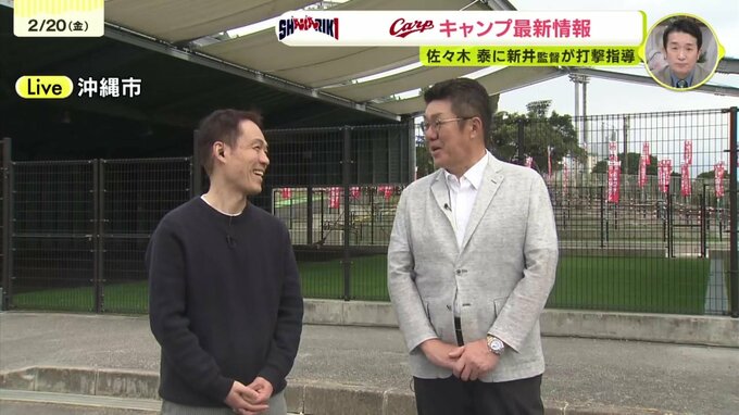 【カープ沖縄キャンプ】快音響かせる佐々木泰 新井監督の“沈黙”を破らせ熱血指導 和製大砲への階段 中国放送 2026年2月20日(金) 19:23 スポーツ この様子に、RCC解説の佐々岡真司さんも「一番気になるでしょうし、(新井監督と佐々木選手は)同じスタイル、足を上げるフォームですからね」と、かつての和製大砲の面影を重ね合わせ、熱い視線を送っていた。