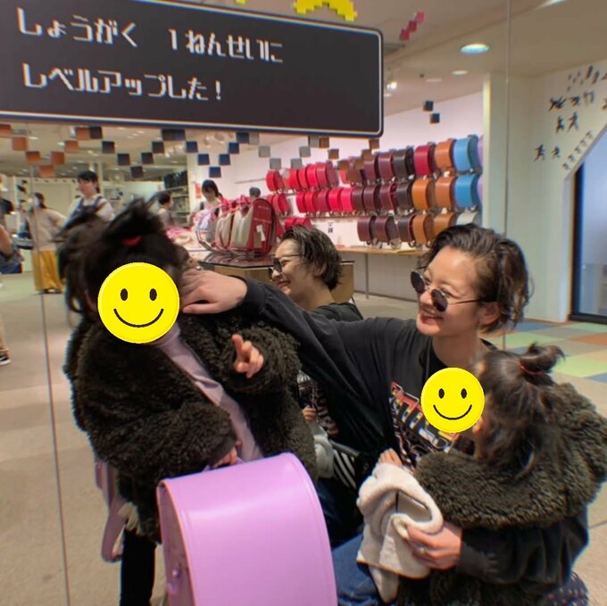 「選んだ日には大きかったランドセルも」「いつのまにか彼女の背中には窮屈に」として、初めて長女にランドセルを選んだ日の写真と、ともに大きくなった長女と次女を両腕に抱く西山さんの3ショットの後ろ姿の写真を投稿。成長を実感させる2枚となっています。