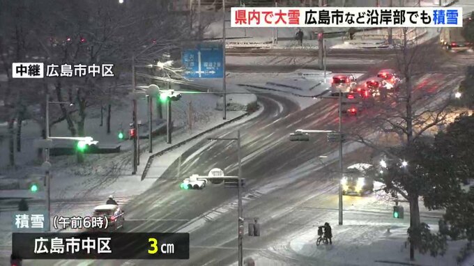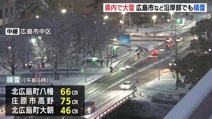 午前6時の積雪は3センチ、気温はマイナス1・4℃です。また、北部や南部の内陸ではまとまった積雪となっていて庄原市高野の積雪は70センチを超えました。