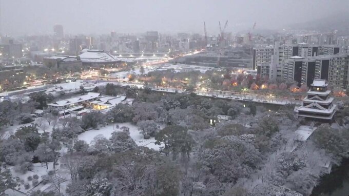 こちらは現在の広島市中区の様子です。午前5時前ころからしっかりと雪が降りあたり一面が白くなっています。