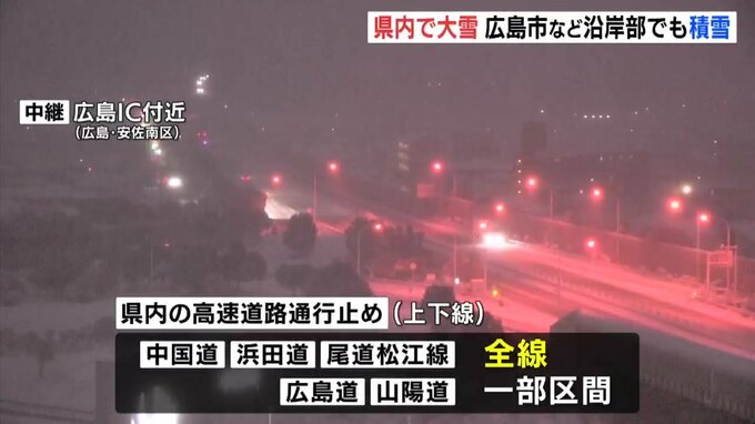 23日の県内は広くまとまった積雪となり、広島市などの沿岸部でも雪が積もっている所があります。