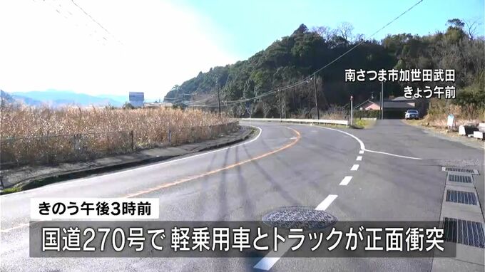 南さつま警察署によりますと、20日午後3時前、南さつま市加世田武田の国道270号で、枕崎市方向へ向かっていた軽乗用車と対向してきたトラックが正面衝突しました。