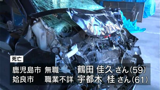 この事故で、軽乗用車を運転していた鹿児島市下荒田1丁目の無職・鶴田佳久さん(59)と軽乗用車の助手席に乗っていた姶良市脇元の職業不詳・宇都木桂さん(61)が体を強く打つなどして病院に搬送されましたが死亡しました。