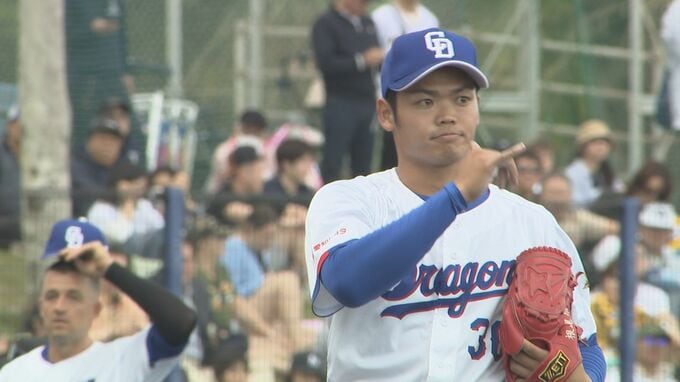 オープン戦初戦の先発を任されたのは、16年目のベテラン左腕・大野投手だ。「何か月かぶりの実戦で緊張した」と言いながらも、初回を三者凡退に仕留める最高の立ち上がり。2回には阪神の4番・大山悠輔選手にヒットを許しながらも、2回を投げて被安打1、奪三振2、無四球と圧巻の内容でマウンドを降りた。 この日の最速は145キロを計測。「16年目のキャンプですけど、過去の中で1番いい投球ができたんじゃないかな」と表情には充実感がにじんだ。井上一樹監督も「大野雄大らしい投球」と全幅の信頼を寄せた。