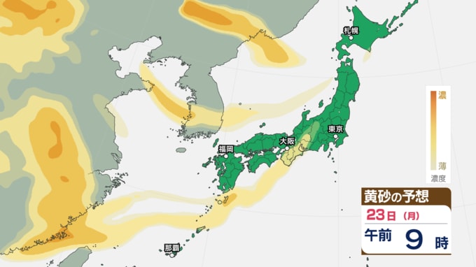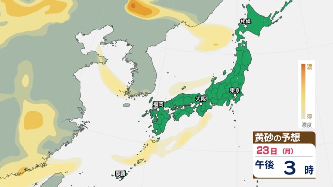 3. 【黄砂予想】あす22日~23日に黄砂が飛来する可能性 アレルギーや呼吸器系疾患の人は注意を【黄砂のシミュレーション・21日午後9時30分現在】