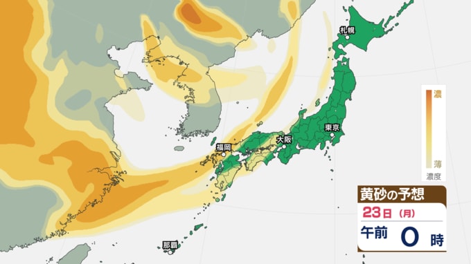 【黄砂予想】あす22日~23日に黄砂が飛来する可能性 アレルギーや呼吸器系疾患の人は注意を【黄砂のシミュレーション・21日午後9時30分現在】