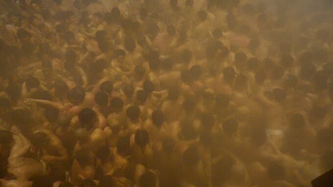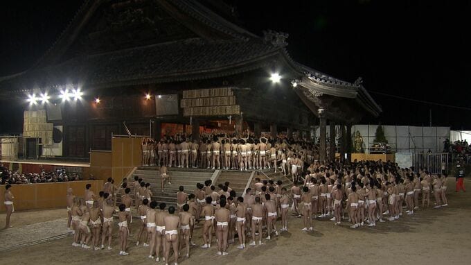 始まって数分後、裸の群れから救出を求める動きがあり、待機していた消防団員らが駆け付けるなど、辺りは騒然とします。