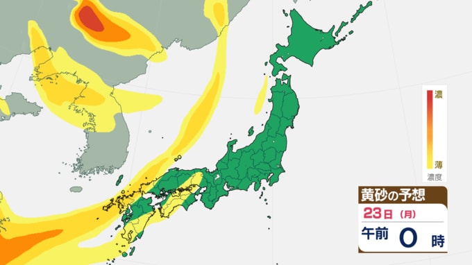 屋外では所により黄砂が付着するなどの影響が予想されます。洗濯物の外干しや、洗車のタイミングには注意してください。交通への障害:視程が5キロメートル未満となった場合、交通への障害が発生するおそれがあります。車の運転などは、見通しの悪化に注意してください。