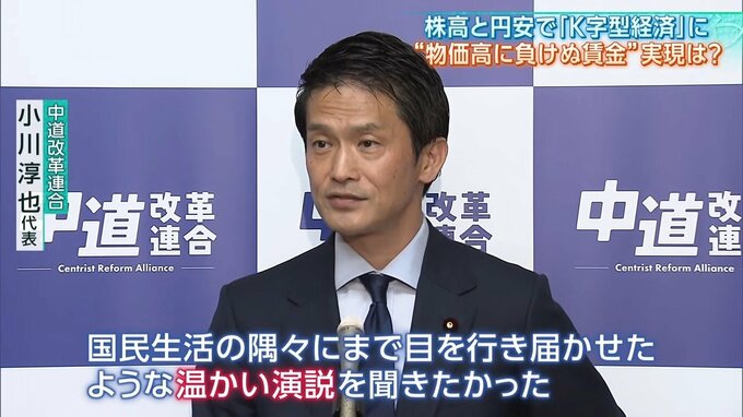 「暮らしや生活、物価高。国民生活の隅々にまで目を行き届かせたような温かい演説を聞きたかった」