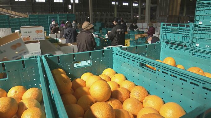 三重県御浜町周辺では100軒以上の農家がデコポンを栽培していて、JAの選果場では従業員が一つ一つ傷や日焼けがないかなどを確かめながら、箱詰め作業に追われています。