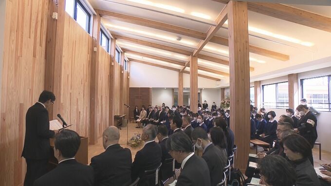 今年4月から男女共学となる福島市の桜の聖母学院中学校で、新しい校舎の落成式が行われました。