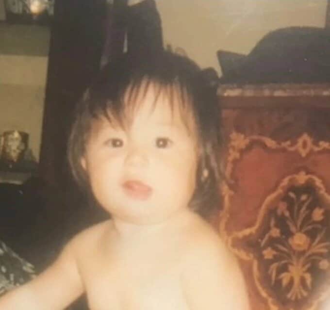 公開された幼少期の写真は、ぷっくりとした頬と、吸い込まれそうな大きな瞳が印象的な一枚。カメラをじっと見つめる表情には、現在の面影がはっきりと見て取れ、当時から完成された美少女ぶりをうかがわせます。
