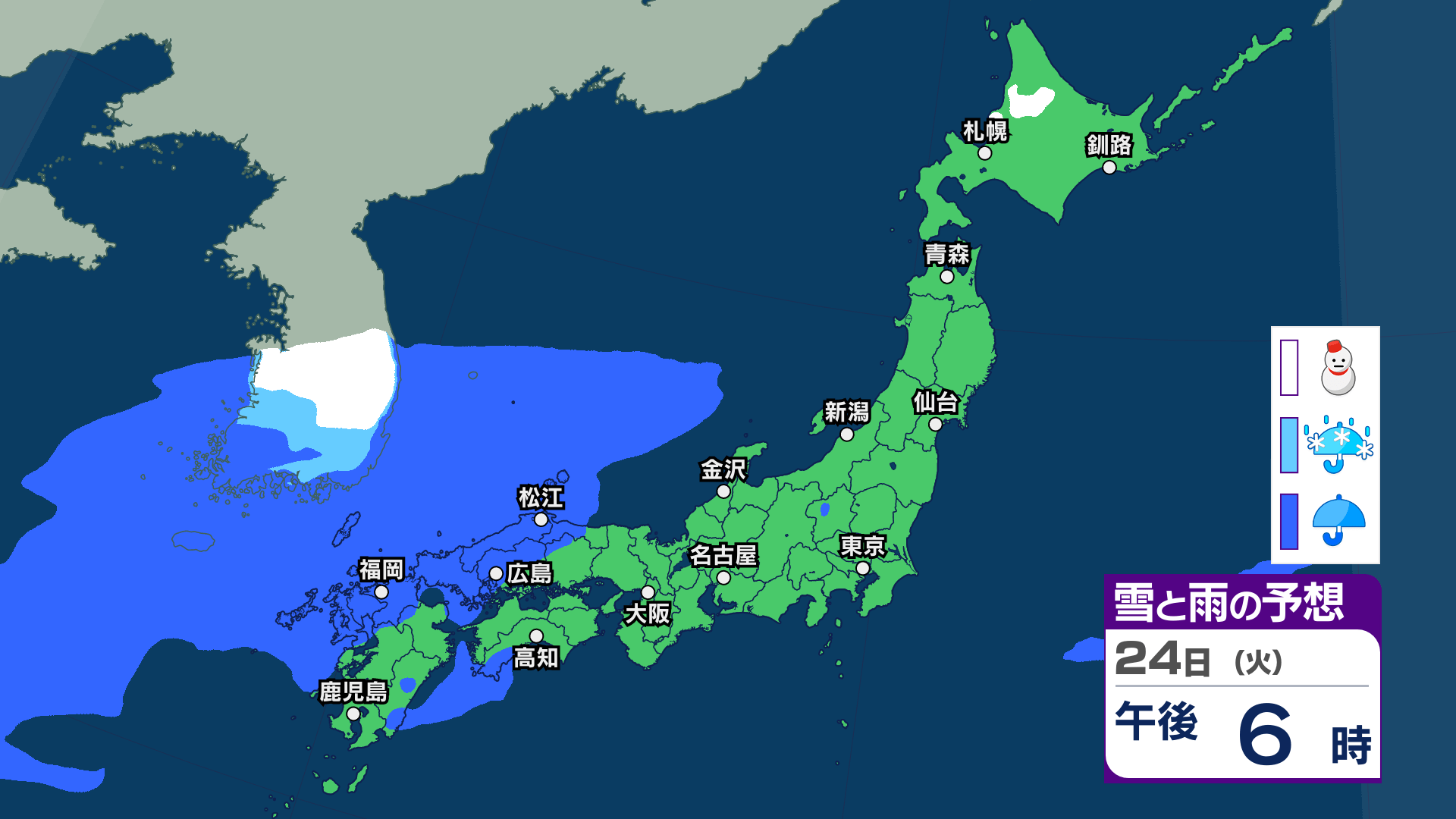 25日(水)の雨と雪のシミュレーション