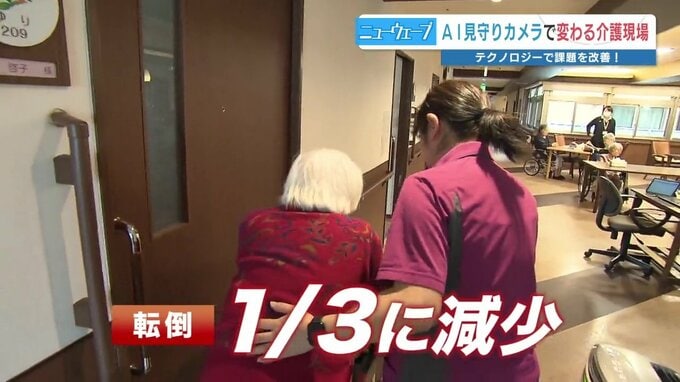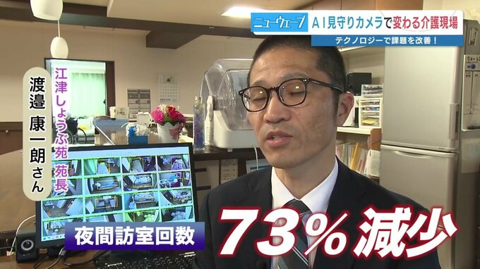 江津しょうぶ苑 渡邉康一朗 苑長「お部屋に夜間訪室する回数が73%減少しております。それと転倒が1/3に減少しております」