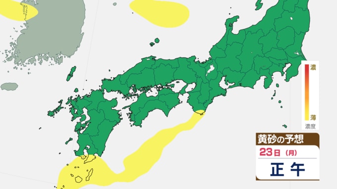 【雨情報】25日(水)から大雨おそれ 最高気温は東京で22℃→12℃急降下予想 24日(火)は西から雨エリア拡大へ 雨風シミュレーション 長崎放送 2026年2月23日(月) 11:00 国内 西日本は黄砂飛来中 ◆雨風シミュレーション(全国) ◆雨風シミュレーション(関東) ◆黄砂シミュレーション 西日本を中心に黄砂が飛来しており、見通し(視程)が5キロ未満となる所がある見込みです。