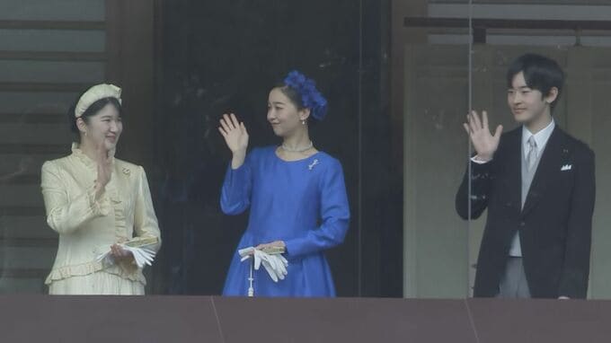 天皇皇后両陛下をはじめ、愛子さま、秋篠宮ご夫妻、佳子さま、悠仁さまの7人が笑顔でベランダに立たれました。