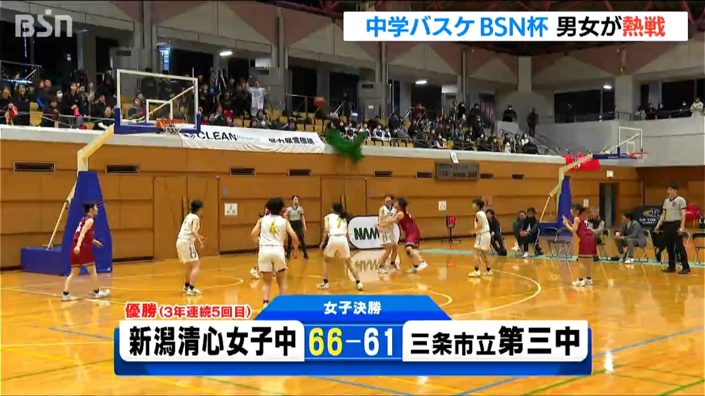 バスケットボールの中学生新チームによる新潟県大会が開かれ、男子は新発田市の本丸中が、女子は新潟清心女子中が優勝しました。