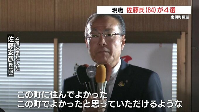 任期満了に伴う南関町の町長選挙は、22日に投開票され、現職の佐藤安彦氏(64)が4選を果たしました。