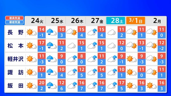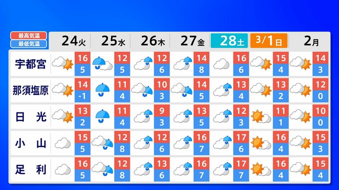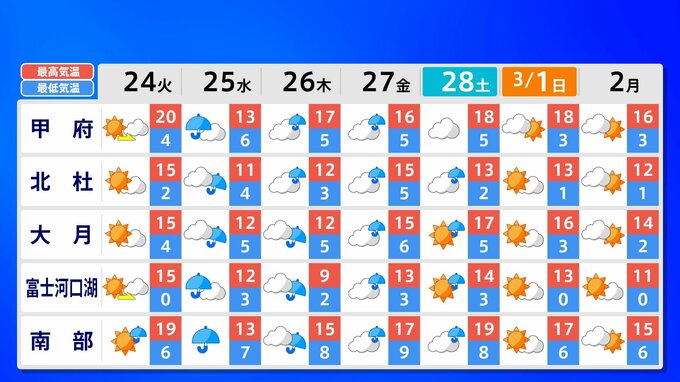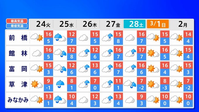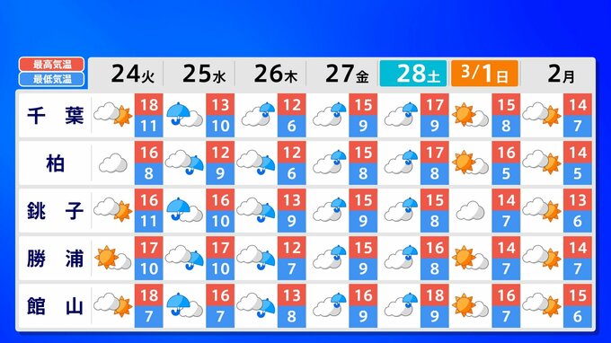 関東甲信地方 各都市の週間予報(3月2日(火)まで)