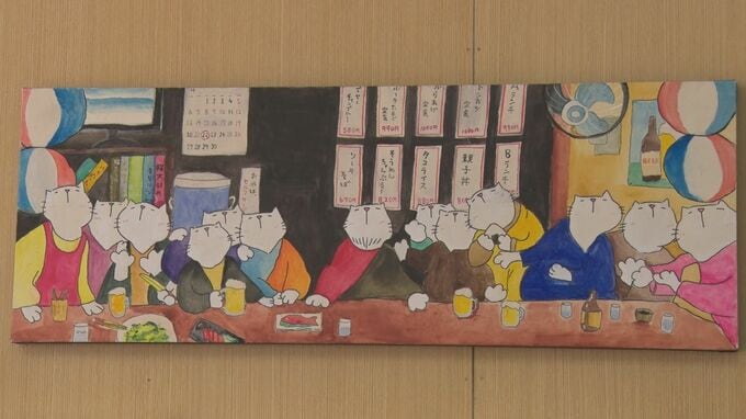 県内で活動する5人のアーティストが制作したイラストや絵本など猫をモチーフにした作品が勢ぞろいしていて、可愛らしく個性豊かに描かれた様々な猫が訪れた人の目をひき付けていました。