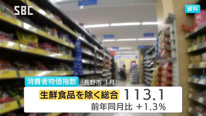 長野市の1月の消費者物価指数は、生鮮食品を除く総合が前の年の同じ月より1.3%上昇しました。