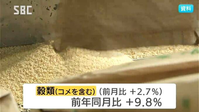 食料のうち、価格の高騰が続くコメを含む穀類は前の月に比べて2.7%、去年の同じ月に比べると9.8%上昇しました。