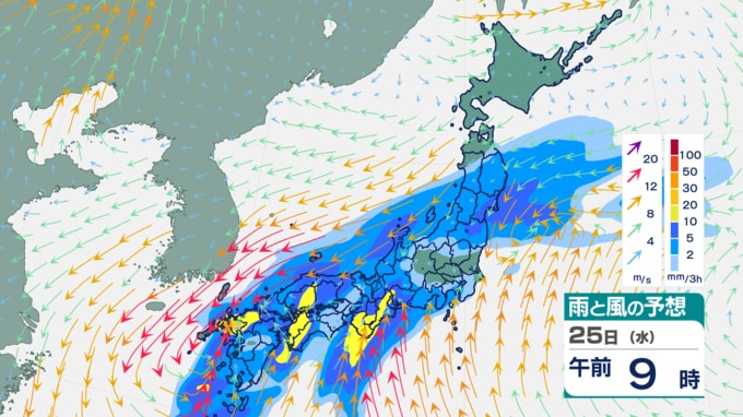 各地“春一番”で気温上昇、今後は前線接近で雨の予報…恵みの雨となるか?【雨風シミュレーション】 テレビ高知 2026年2月23日(月) 14:00 国内 天気 25日は全国的に雨となり、降り方の強まる時間もあるでしょう。 太平洋側を中心に雨だけでなく風も強まる見込みです。