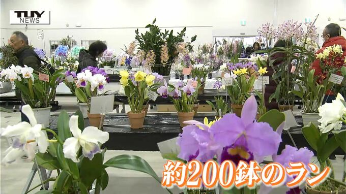 会場には、山形と宮城の愛好家や団体などが育てたラン、およそ200鉢がズラリと並んでいます。