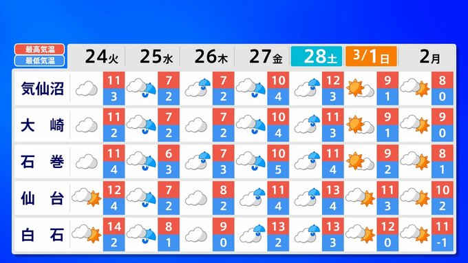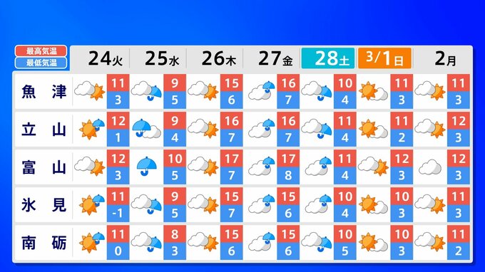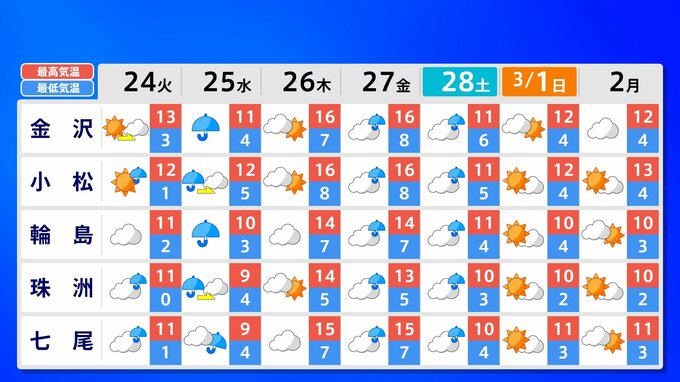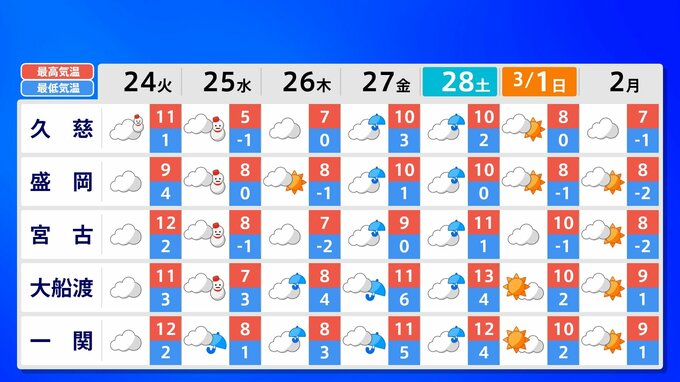 全国の週間予報(24日(火)~3月2日(月))