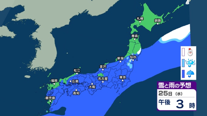 3. 【今後の雨や雪は?】三連休明けは西から次第に雨 25日は太平洋側を中心に“バケツをひっくり返したような”激しい雨か【3時間ごとのシミュレーション・23日午後10時更新】