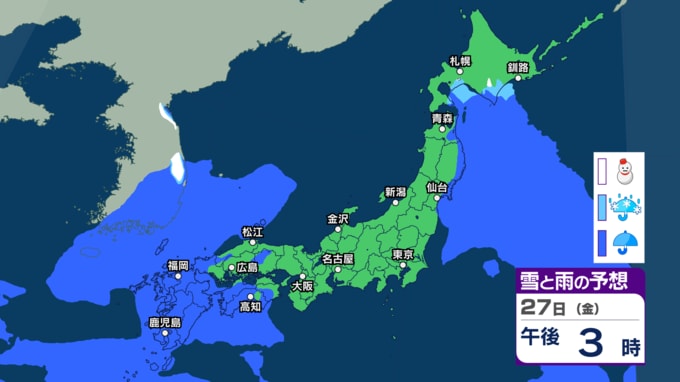 【雪雨情報】あす(24日)から全国的に雨模様 23日(月)~28日(土)3時間ごとの雪雨シミュレーション 28日(土)も広い範囲で雨か【気象庁週間天気予報 23日現在】|TBS NEWS DIG