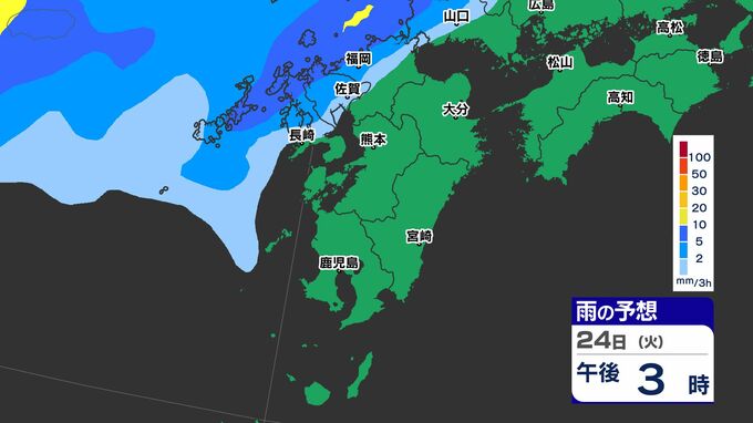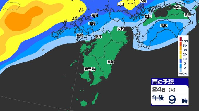 2回、大雨の可能性があります。1回目は24日(火)~25日(水)、2回目は27日(金)です。特に27日(金)は送別会などでお帰りが遅くなる方は、注意しましょう。