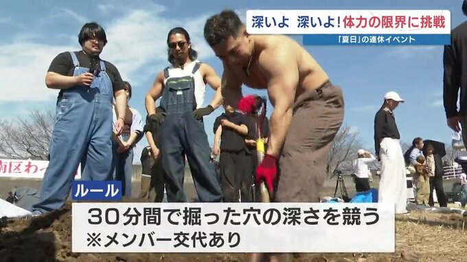 前回大会の優勝の「teamりあるらいふ」、筋骨隆々の「ユーチューバーチーム」、そして今年の大本命、全国大会で現在4連覇中の埼玉県「暁工業」など穴掘りの猛者たちが集まりました。